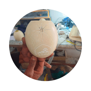 Each luminary begins as a naturally sourced ostrich egg — carefully carved, polished, and transformed into a glowing sculpture of light and pattern.